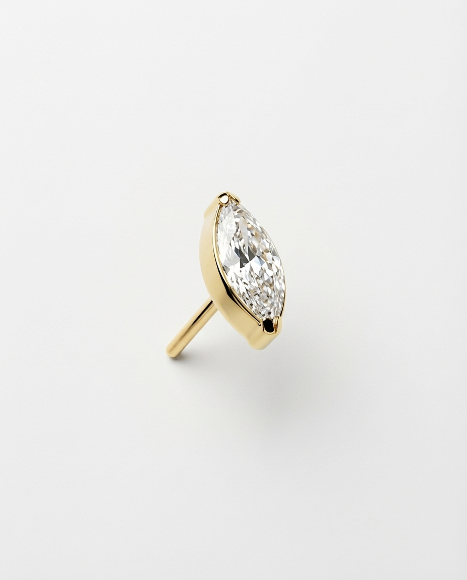 Materials: External 24k PVD Plated with Internal Implant Grade Titanium and Cubic Zirconia or Synthetic Opal